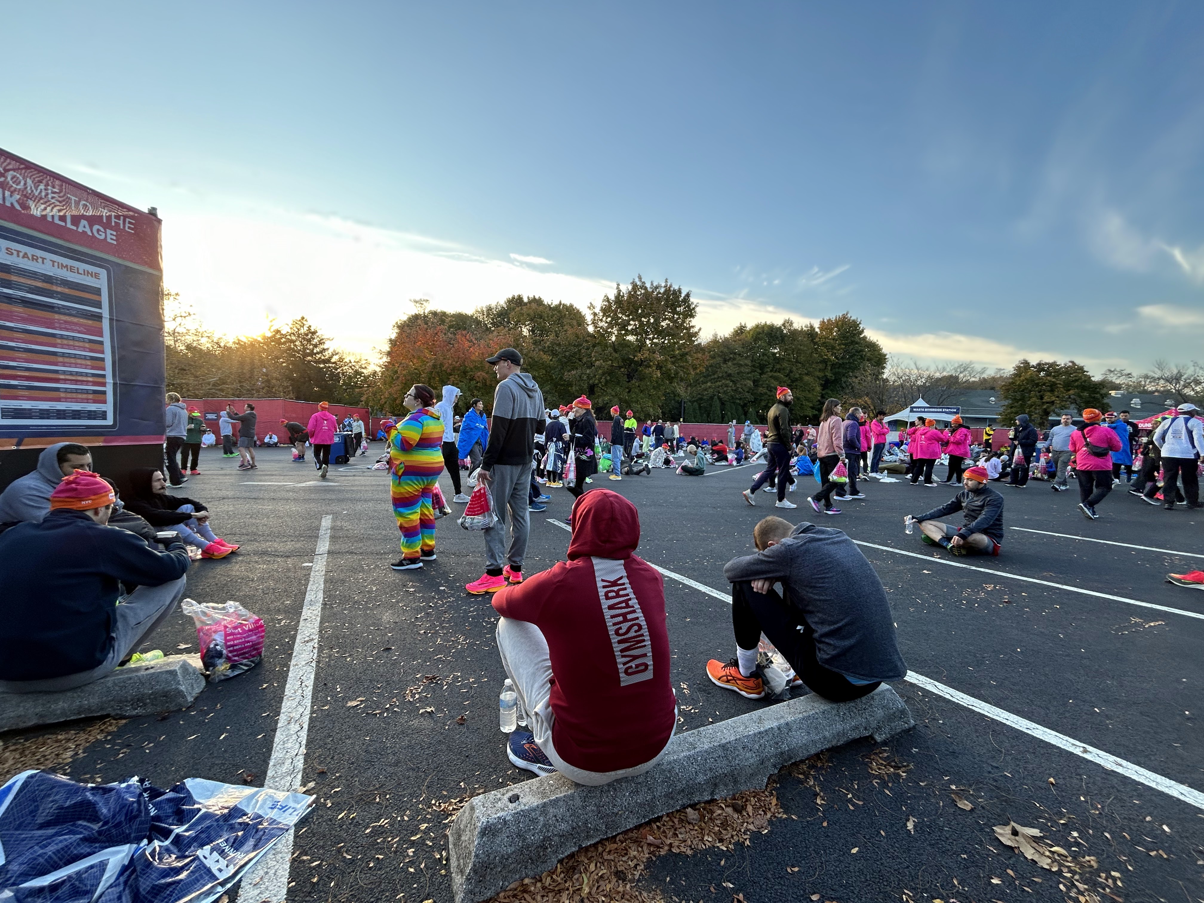 While everyone was waiting for their wave start many runners were sitting on the ground, some took plastic bags and ponchos and even small blankets to keep them warm.